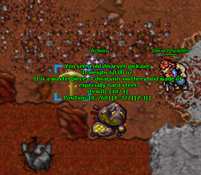 Old Dwarven Pickaxe: Obtida na Quest dos Anões dentro da própria Dwarf Cave, ou combinando um Rust Remover (feito na Forja ou comprado no NPC de Ferramentas ao norte do templo) com uma picareta normal.